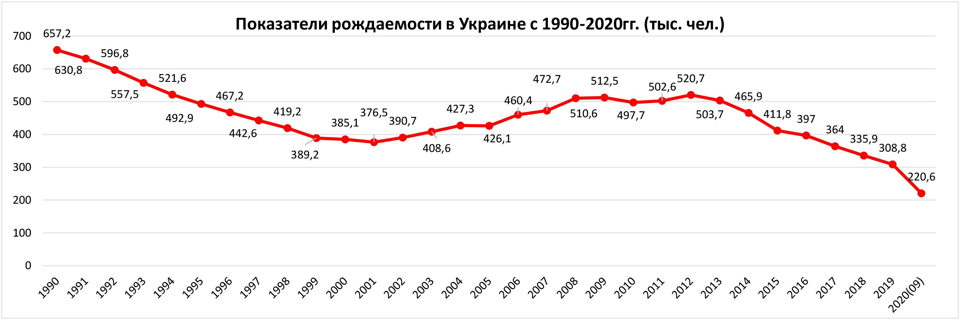 За годы Независимости Украины уровень рождаемости снизился более чем вдвое.