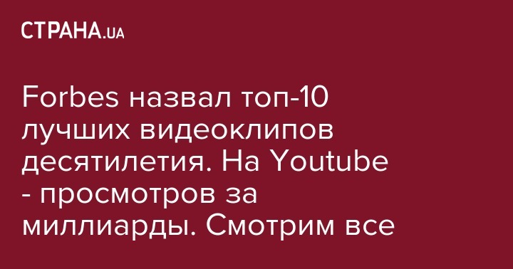 Авторитетный американский журнал Forbes составил топ-10 видеоклипов, в период с 2010 по 2019 год собравших на YouTube наибольшее количество просмотров. Список роликов появился на сайте издания.