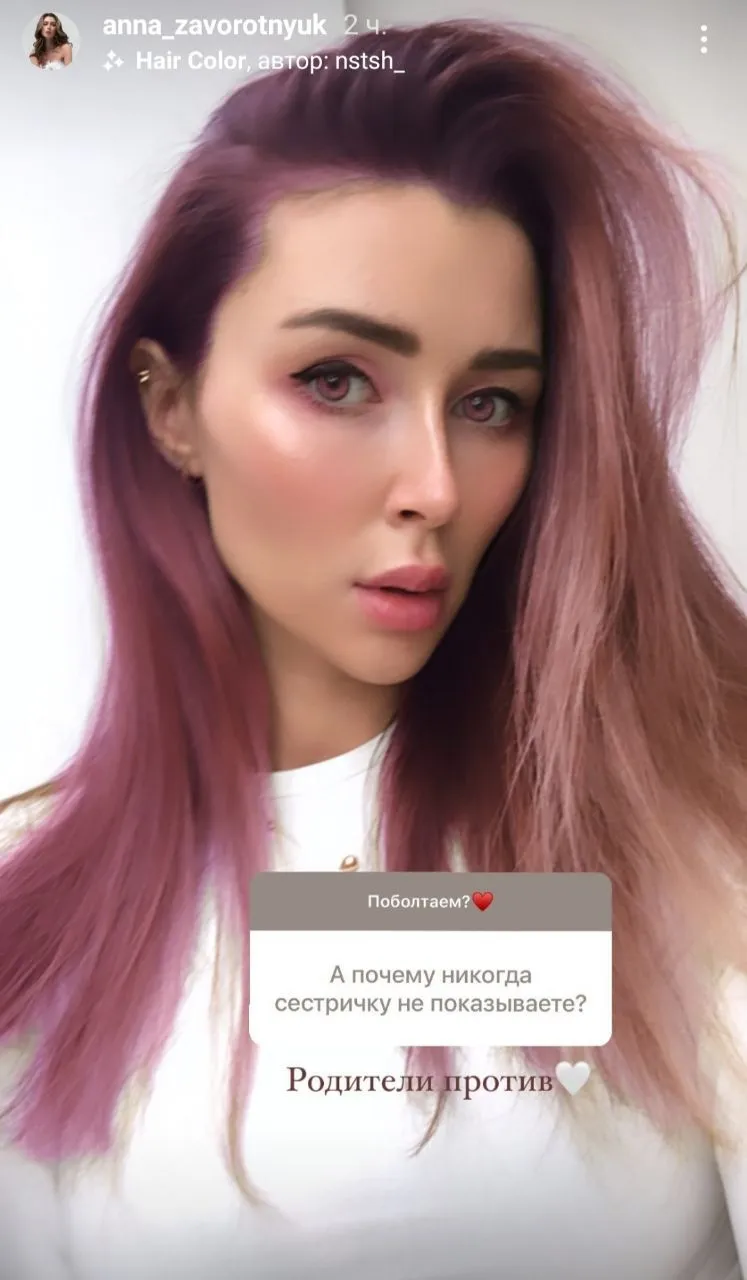 Также Анна Заворотнюк рассказала, почему никогда не показывает сестру Милу, рожденную Анастасией в браке с Петром Чернышовым. Выяснилось, что родители оказались против того, чтобы Анна показывала жизнь младшей сестры.