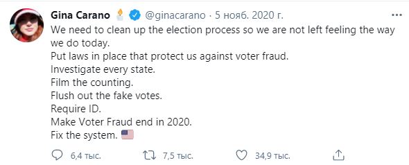 Это не первый раз, когда сообщения Джины в соцсетях вызывают бурную реакцию. Актриса писала, что выборы 2020 года в США сфальсифицированы и требовала положить конец мошенничеству.