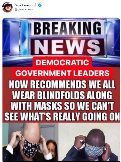 Она также высмеивала демократов, которые "рекомендуют носить вместе с масками повязки на глаза, чтобы никто не увидел, что на самом деле происходит".