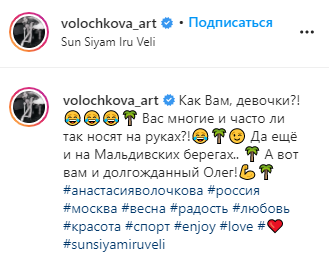 Балерина отдыхает на островах с возлюбленным по имени Олег. Фото: instagram.com/volochkova_art