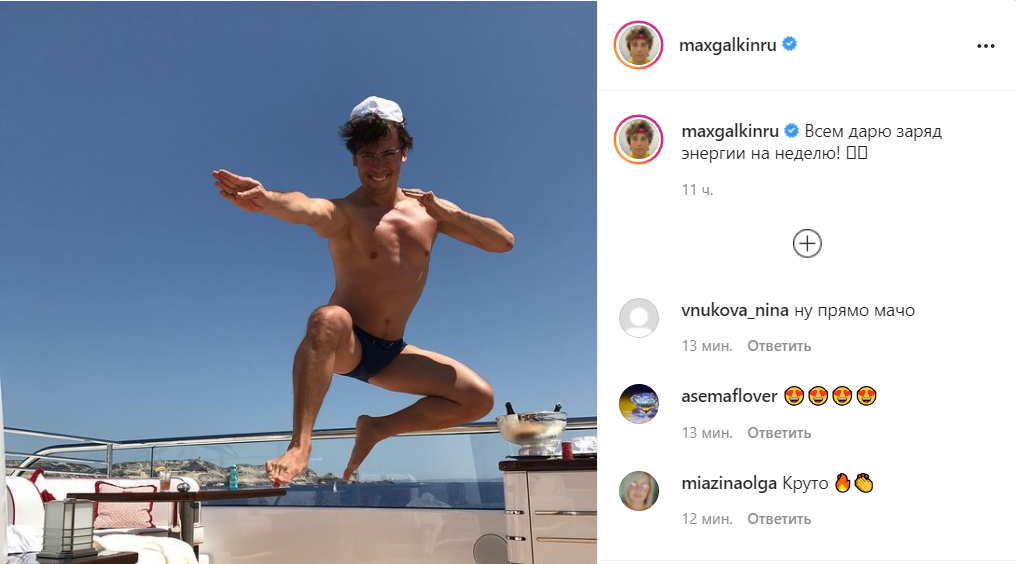 В понедельник, 19 июля, супруг Примадонны Максим Галкин, который показал фото без макияжа 72-летней Аллы Пугачевой, в этот раз порадовал фанатов собственным ярким фото на яхте.