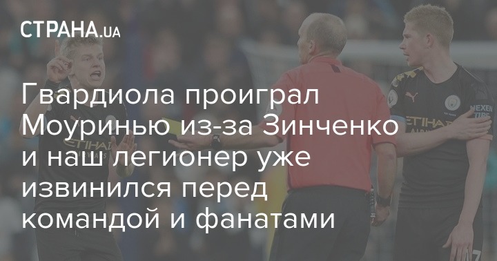 Футболист Манчестер Сити и сборной Украины Александр Зинченко извинился перед своей командой и болельщиками за то, что его удалили с поля во вчерашнем, 2 февраля, гостевом матче против Тоттенхэма (который не так давно возглавил принципиальный противник Пепа Гвардиолы Жозе Моуринью, "шпоры" выиграли 2:0 - Ред.).