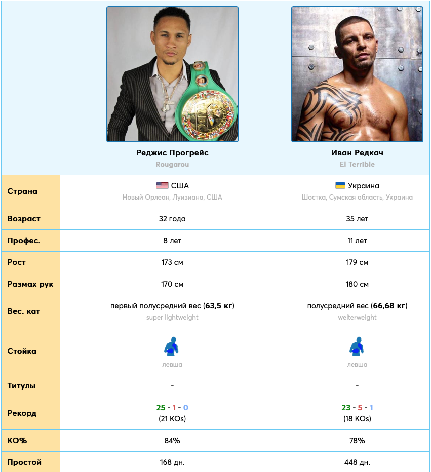 Иван Редкача vs Реджис Прогрейс. Инфографика с сайта champinon.info