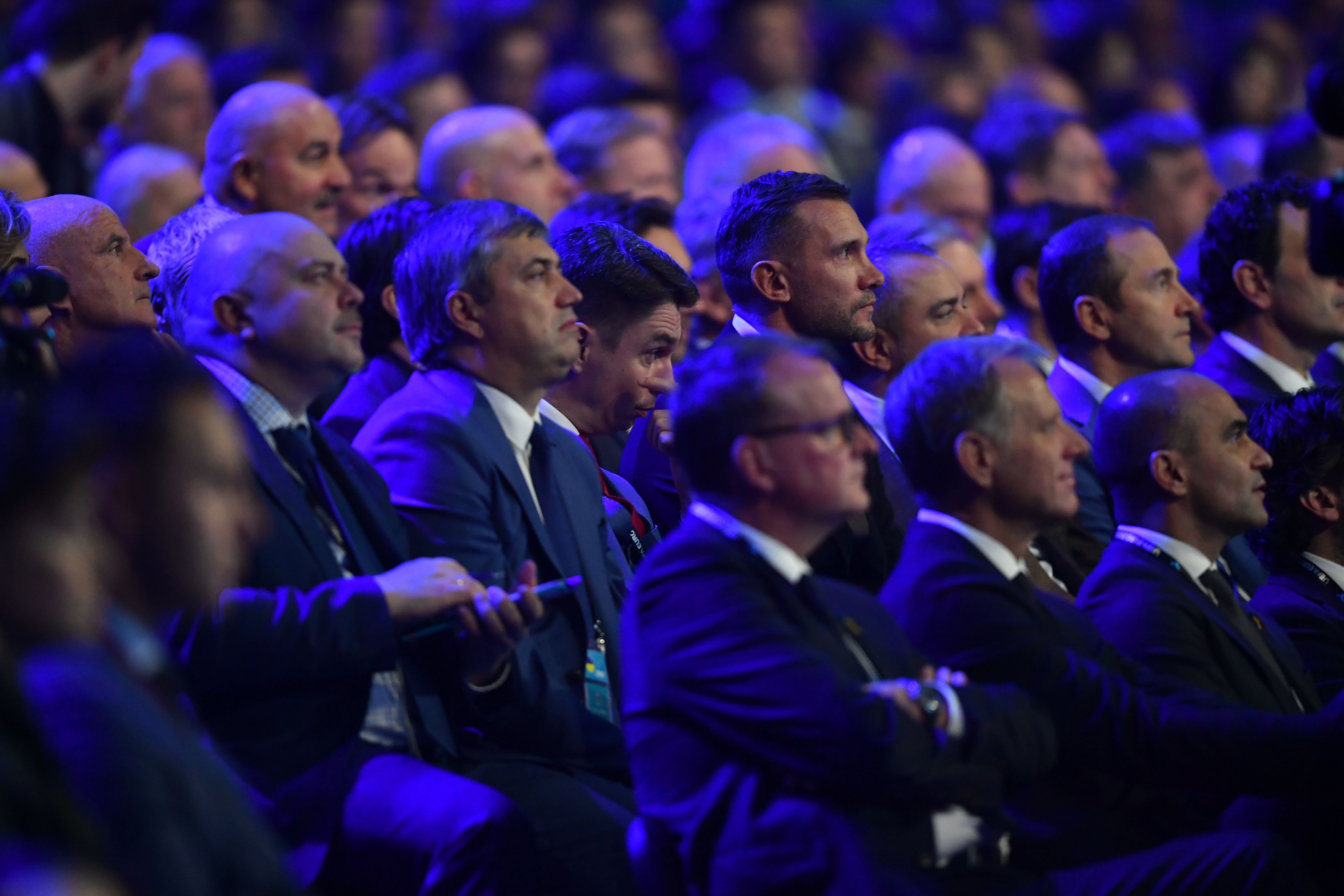 19:26 На сцену приглашают футболистов из прошлого на проведения жеребьевки. Среди них Икер Касильяс, Марсель Десайи, Филипп Лам, Теодорис Загоракис, Франческо Тотти, Андрей Аршавина и вице-президента УЕФА Джорджио Маркетти