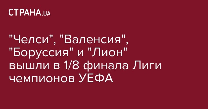 В заключительном туре группового этапа Лиги чемпионов УЕФА "Челси" выиграл у французского "Лилля" 2:1, "Валенсия" в Голландии обыграла амстердамский "Аякс" 1:0, дортмундская "Боруссия" разгромила чешскую "Славию" (2:1), а "Лион" и "Лейпциг" сыграли вничью 2:2. Об этом сообщает "Укринформ".