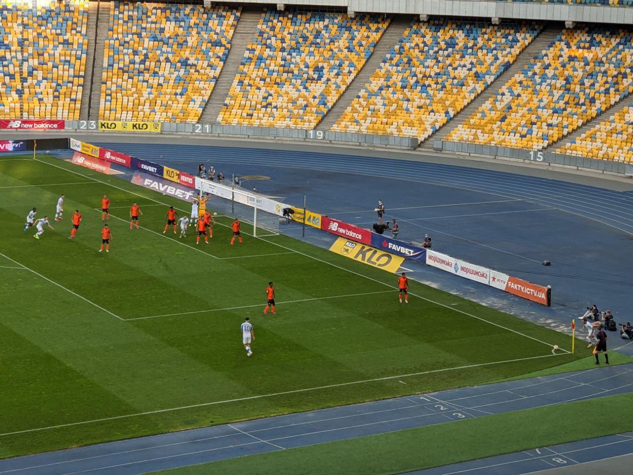45 Угловой у ворот "Динамо". Игроки "Шахтера" просили пенальти, но после консультации с арбитром VAR пенальти Виталий Романов ставить не стал.
