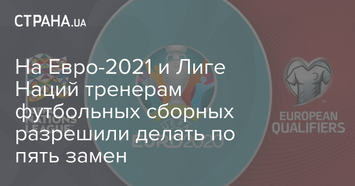 На Евро-2021 и Лиге Наций тренерам футбольных сборных разрешили делать по пять замен