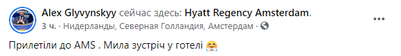 "Прилетели в AMS. Приятная встреча в отеле", - подписал обнародованные снимки в социальной сети Александр Гливинский.