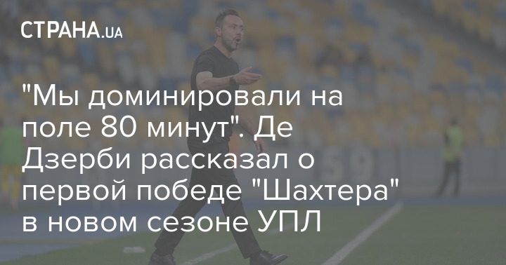 "Мы доминировали на поле 80 минут". Де Дзерби рассказал о первой победе "Шахтера" в новом сезоне УПЛ
