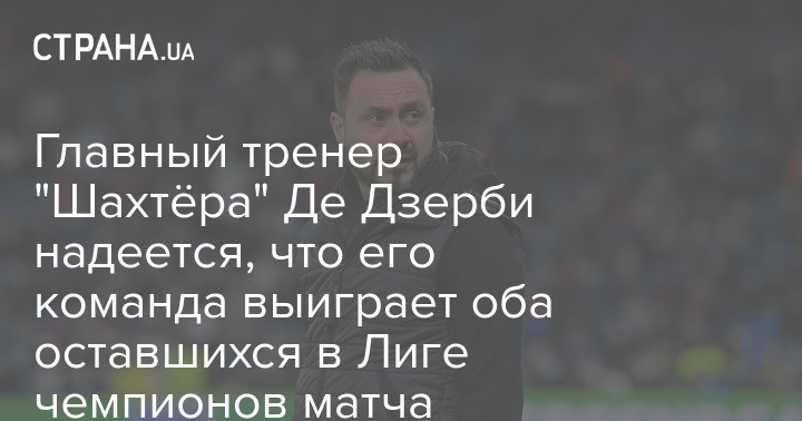 Главный тренер "Шахтёра" Де Дзерби надеется, что его команда выиграет оба оставшихся в Лиге чемпионов матча