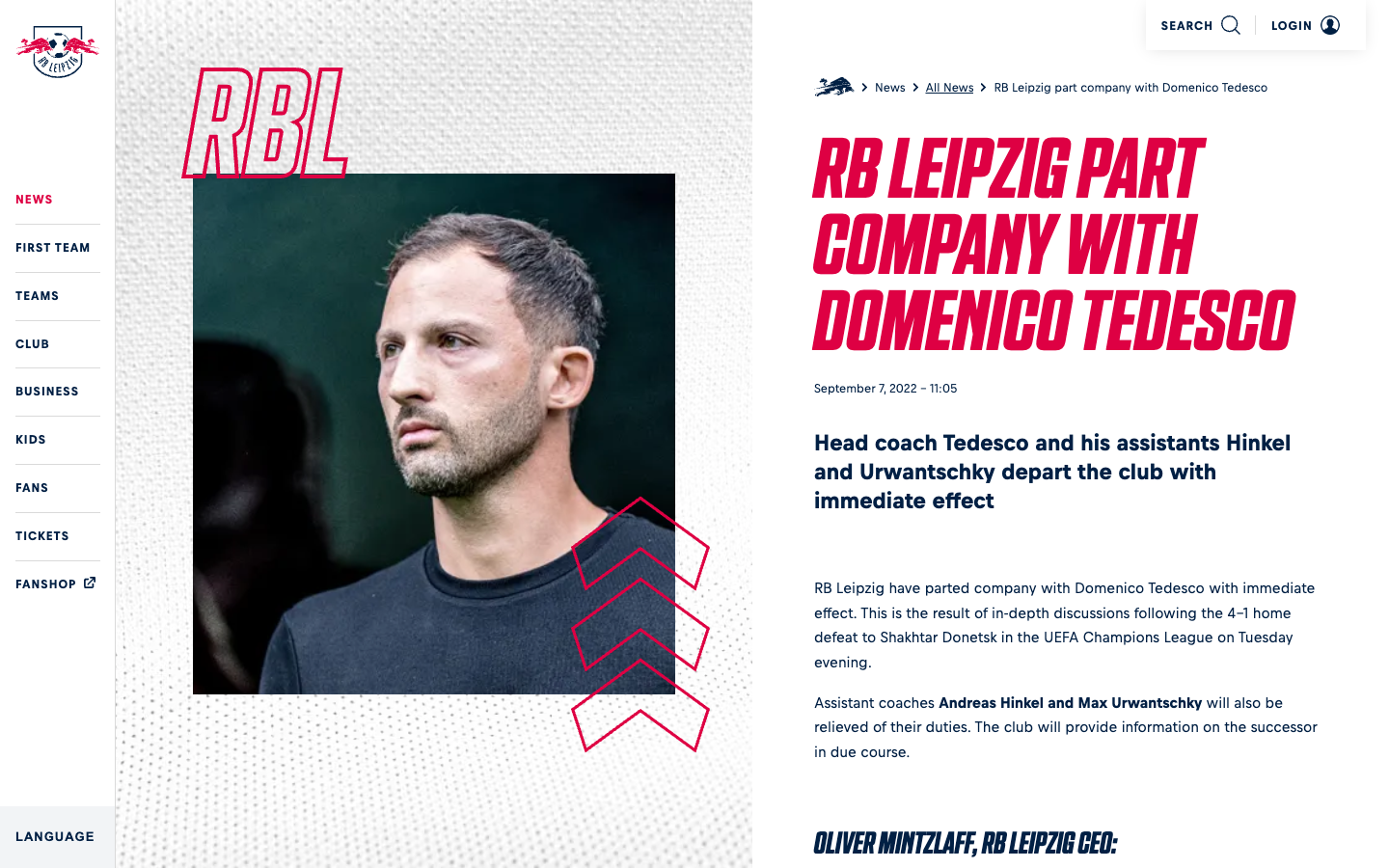 Гендиректор "РБ Лейпциг" Оливер Минцлафф заявил, что решение было "очень тяжелым", ведь в прошлом году клуб дошел до полуфинала Лиги Европы и занял четвертое место в Бундеслиге.