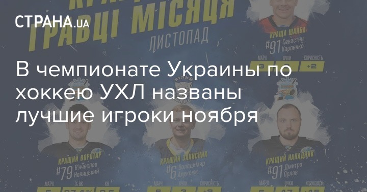 В ноябре 2019 года лучшими игроками чемпионата Украины по хоккею (УХЛ) признаны Новицкий, Алексюк и Орлов. Автором лучшей шайбы месяца стал Севастьян Карпенко. Об этом сообщает пресс-служба УХЛ.