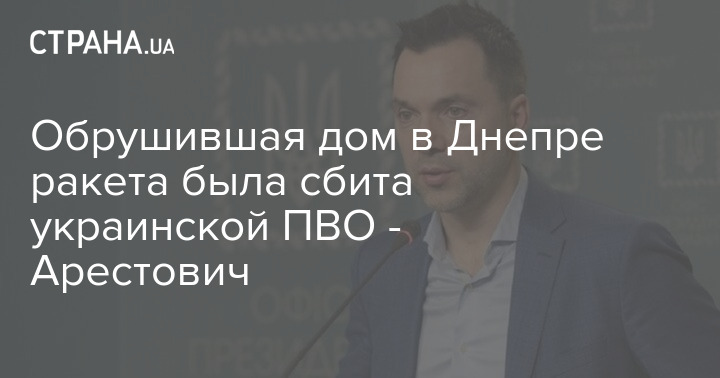 Ракета, що обрушила будинок у Дніпрі, була збита українською ППО - Арестович