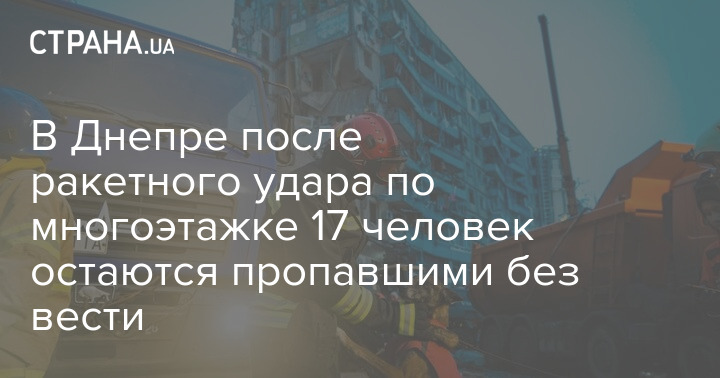 У Дніпрі після ракетного удару по багатоповерхівці 17 людей залишаються зниклими безвісти