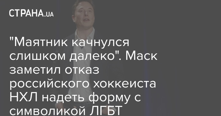 "Маятник хитнувся надто далеко". Маск про відмову російського хокеїста НХЛ одягнути форму із символікою ЛГБТ