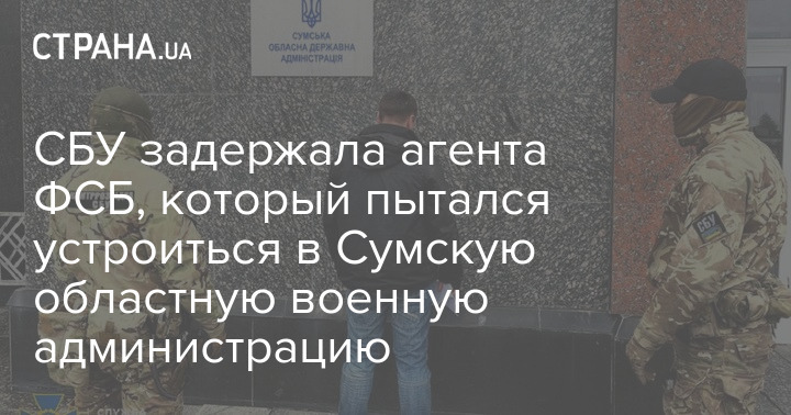 "В результаті багатоетапної спецоперації у Сумах затримано агента ФСБ, який отримав вороже завдання влаштуватися до Управління оборонної роботи обласної військової адміністрації", - розповіли у спецслужбі.