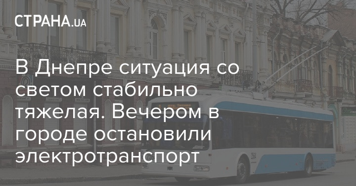 У Дніпрі з 18:10 23 січня зупинили електротранспорт через відсутність напруги на тягових підстанціях.