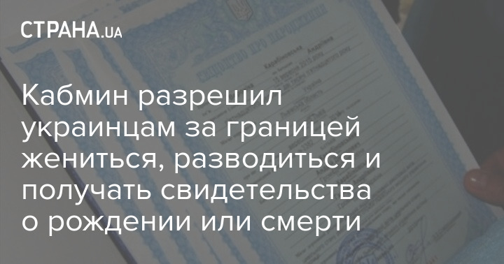 Кабінет міністрів ухвалив постанову, згідно з якою українці зможуть за кордоном одружитися, розлучитися, отримати свідоцтва про народження чи смерть.