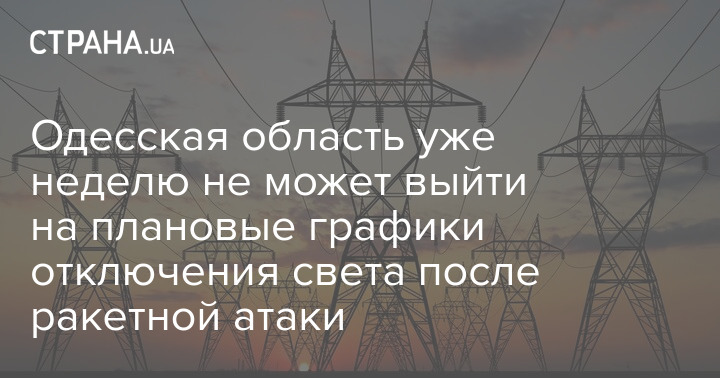 Одеська область вже тиждень не може вийти на планові графіки відключення світла після ракетної атаки