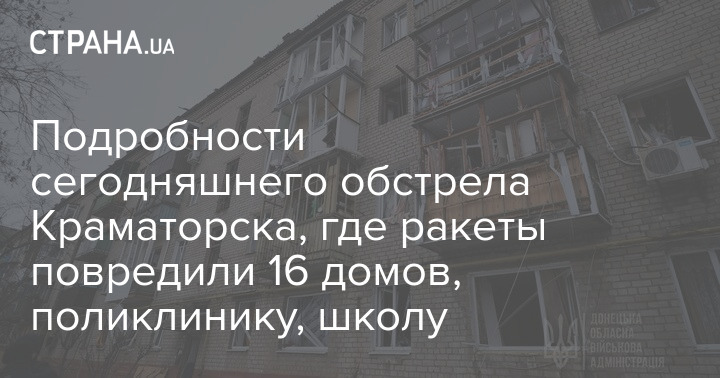 Подробиці сьогоднішнього обстрілу Краматорська, де ракети пошкодили 16 будинків, поліклініку та школу