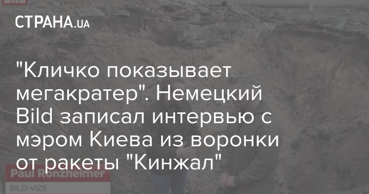 Німецький Bild записав інтерв'ю з мером Києва Кличком із вирви від ракети "Кинжал". Матеріал назвали - "Кличко показує мегакратер із Києва".