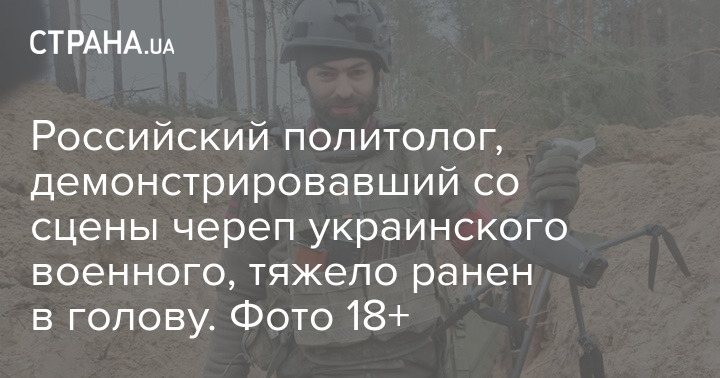 Російського політолога, який демонстрував зі сцени череп українського військового, важко поранено в голову. Фото 18+