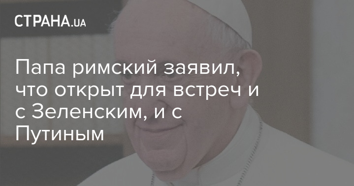 Папа римський Франциск заявив, що відкритий для зустрічей з президентами України та Росії Володимиром Зеленським та Володимиром Путіним для врегулювання конфлікту.