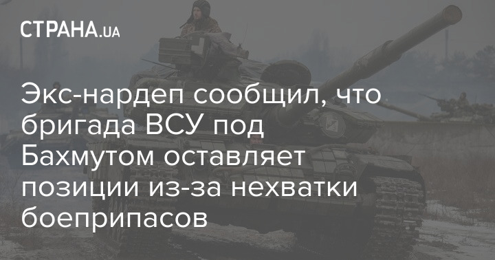 Екс-нардеп повідомив, що бригада ЗСУ під Бахмутом залишає позиції через нестачу боєприпасів
