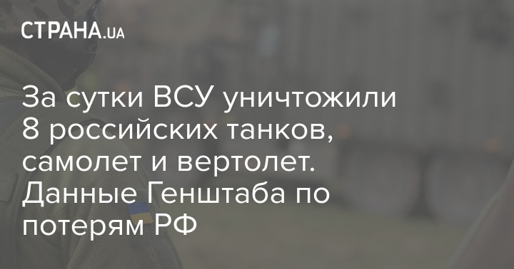 За добу ЗСУ знищили 8 російських танків, літак та гелікоптер. Дані втрат РФ