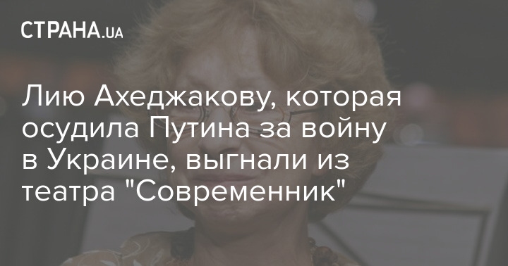 Актриса театру та кіно 84-річна Лія Ахеджакова, відома за роль у стрічці "Службовий роман", заявила, що її вигнали з театру "Современник", де вона пропрацювала майже 50 років. За її словами, вона бачила наказ керівництва, а також новий розклад вистав.