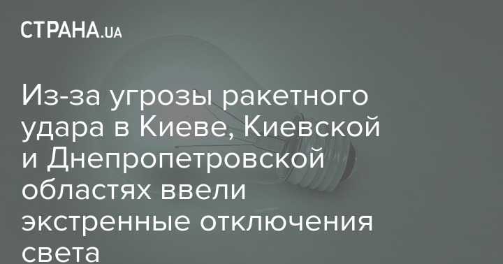 Через загрозу ракетного удару в Києві, Київській та Дніпропетровській областях ввели екстрені відключення світла