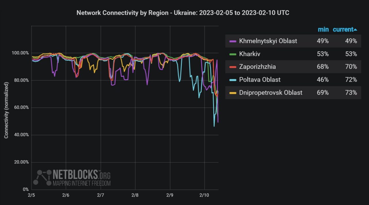 Найбільш масштабні збої у Хмельницькій, Полтавській та Дніпропетровській областях, а також у Харкові та Запоріжжі.