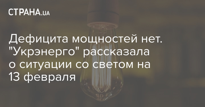 В понеділок, 13 лютого, в Україні виробництво електроенергії повністю покриває споживання, а дефіцит потужностей відсутній.