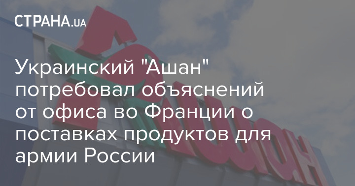 Українська філія "Ашан" вимагає від французького офісу роз'яснень через розслідування видань The Insider, Le Monde та Bellingcat про те, що російський офіс компанії може постачати продукти військовим РФ.