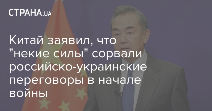 Китай заявив, що російсько-українські переговори на початку війни були припинені під ймовірним впливом "якихось сил", які не хотіли матеріалізації мирних домовленостей.