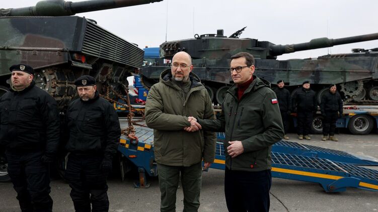 Українські та польські прем'єри зустріли танки на українській землі. Фото: Денис Шмигаль