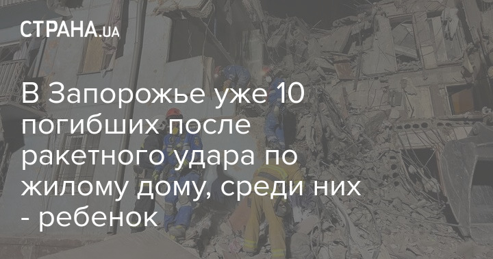 Кількість жертв після ракетного удару по житловому будинку в Запоріжжі зросла до десяти осіб, серед них одна дитина.