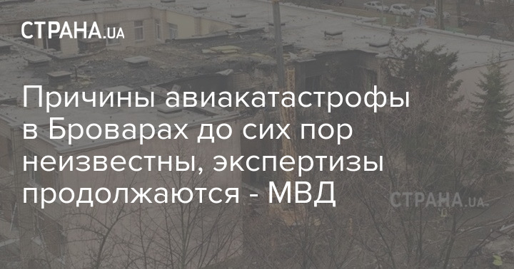 Причини аварії вертольота з керівництвом МВС у Броварах 18 січня досі невідомі. Експертизи у справі продовжуються, зокрема, із залученням французьких та інших іноземних фахівців.