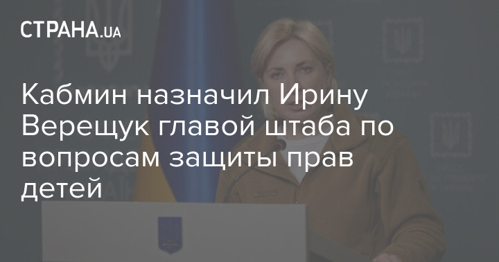 Кабінет Міністрів України призначив віце-прем'єра Ірину Верещук головою штабу з питань захисту прав дітей.