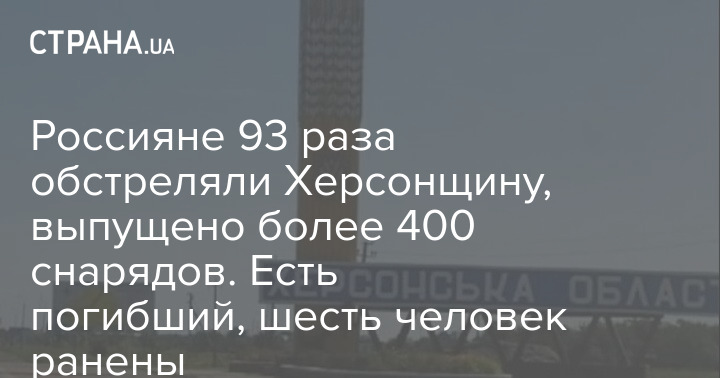 Росіяни 93 рази обстріляли Херсонщину, випущено понад 400 снарядів. Є загиблий та шестеро поранених