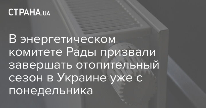 В енергетичному комітеті Ради закликали завершувати опалювальний сезон в Україні вже з понеділка