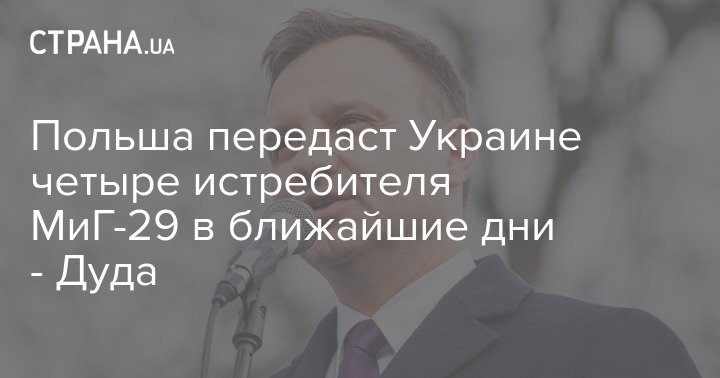 Президент Польщі Анджей Дуда заявив, що Варшава передасть Україні перші чотири винищувачі МіГ-29 найближчими днями.