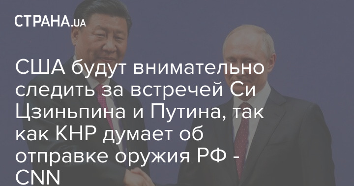 Офіційні особи США уважно стежитимуть за зустріччю голови КНР Сі Цзіньпіна та президента РФ Володимира Путіна, оскільки Китай обмірковує відправку зброї до Росії.