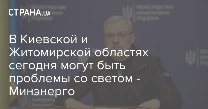 У Київській та Житомирській областях сьогодні можуть бути проблеми зі світлом - Міненерго