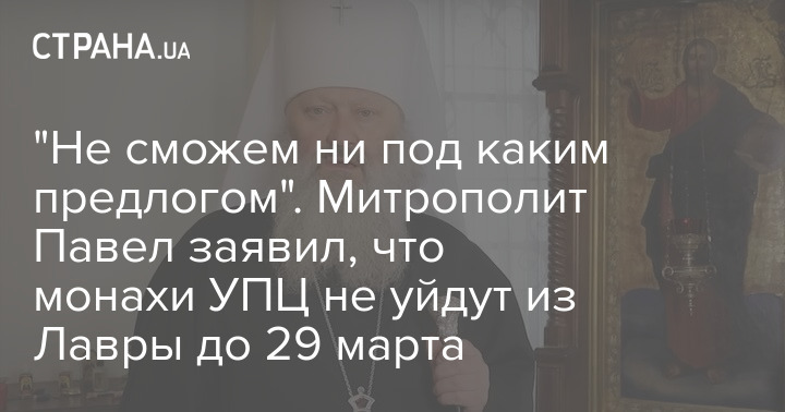 Митрополит УПЦ Павло заявив, що насельники Києво-Печерської лаври не зможуть покинути монастир до 29 березня, як наказано керівництвом заповідника.