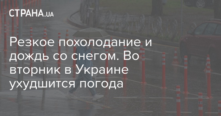 У західних, північних областях, у багатьох центральних регіонах можливі сильні опади. Дощі переходитимуть у мокрий сніг.
