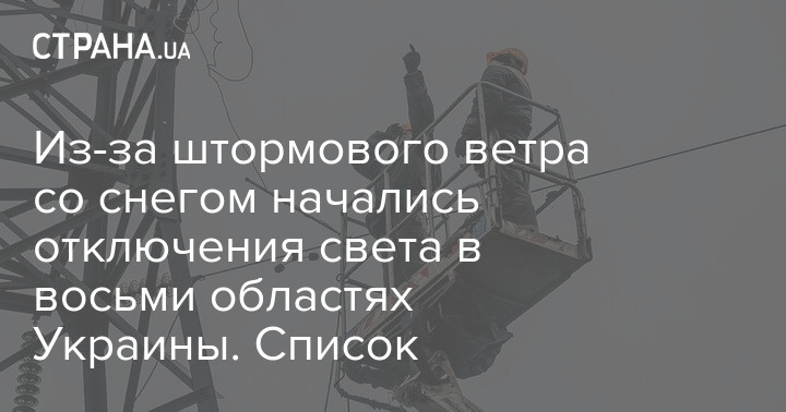 Через штормовий вітер зі снігом почалися відключення світла у восьми областях України. Перелік