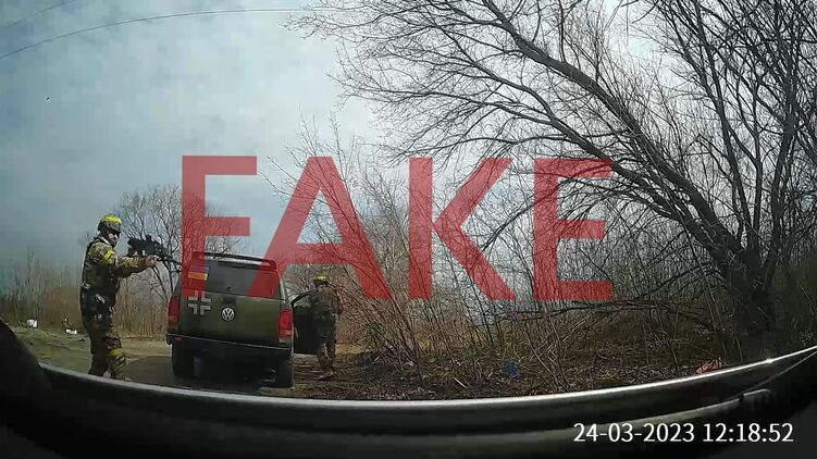Російські телеграм-канали розповсюджують фейкове відео, на якому невідомий в українській військовій формі нібито стріляє по цивільному авто з жінкою та маленькою дитиною. Сфабриковане відео – чергова спроба російської інформаційно-психологічної спецоперації, спроба дискредитувати ЗСУ.
